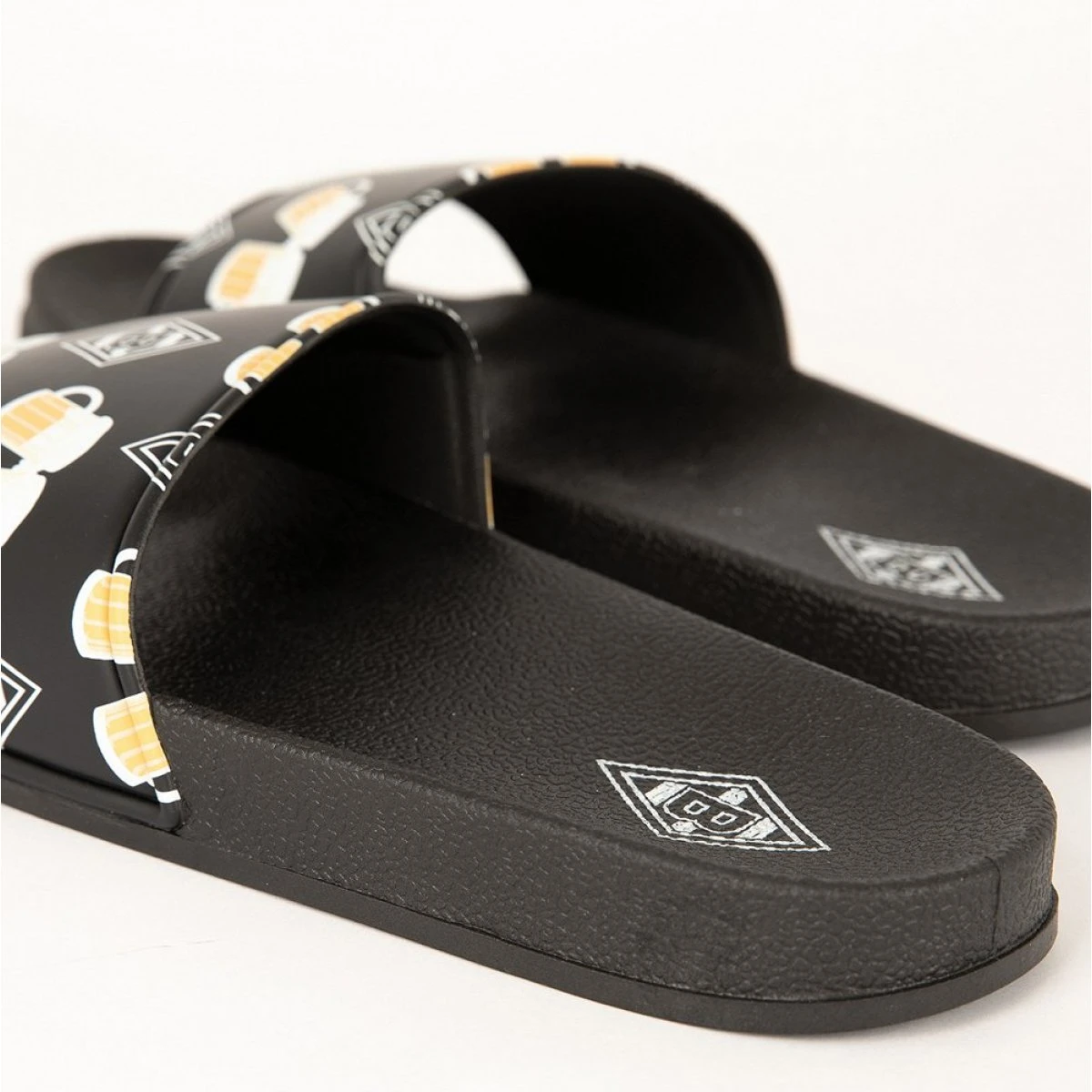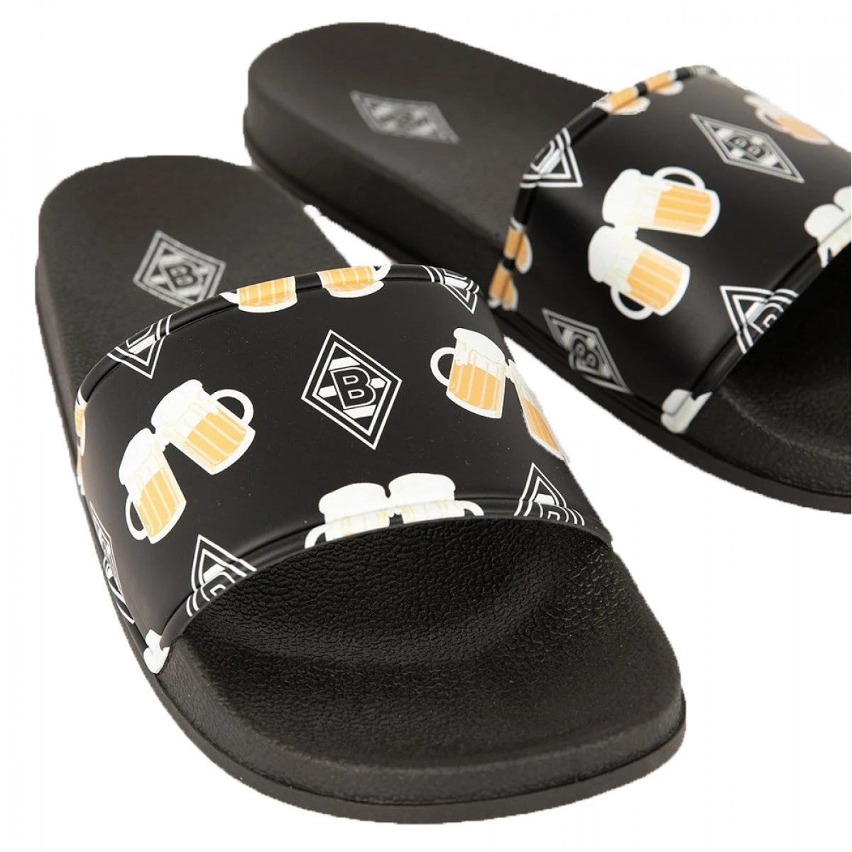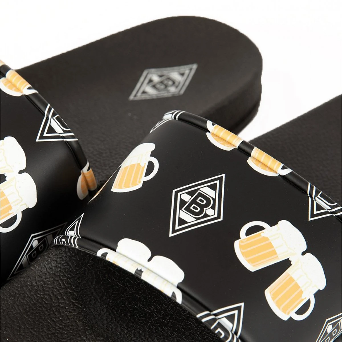 Was gibt es besseres als an heißen Sommertagen in Badelatschen zu schlüpfen. Die Borussia Mönchengladbach Badelatsche „Fußball & Bier“ zeigen sich mit Raute und Bier Motiven. Ein echter Hingucker für alle Borussen Fans.
