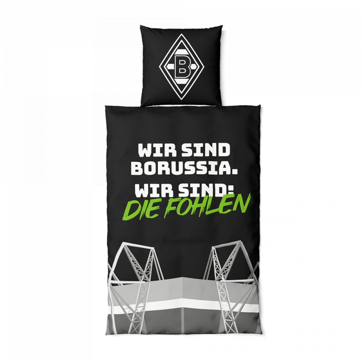 - große Borussia Mönchengladbach Raute auf dem Kissen und auf der Bettdecke