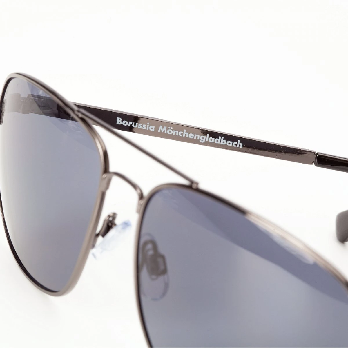 Diese Borussia Mönchengladbach Sonnenbrille wird sicher dein neuer Begleiter in diesem Sommer. Dezent zeigt sich die Pilotenbrille in dunkelgrau glänzend mit grauen Gläsern ,sowie der kleinen Borussia Mönchengladbach Raute am Brillenglas.