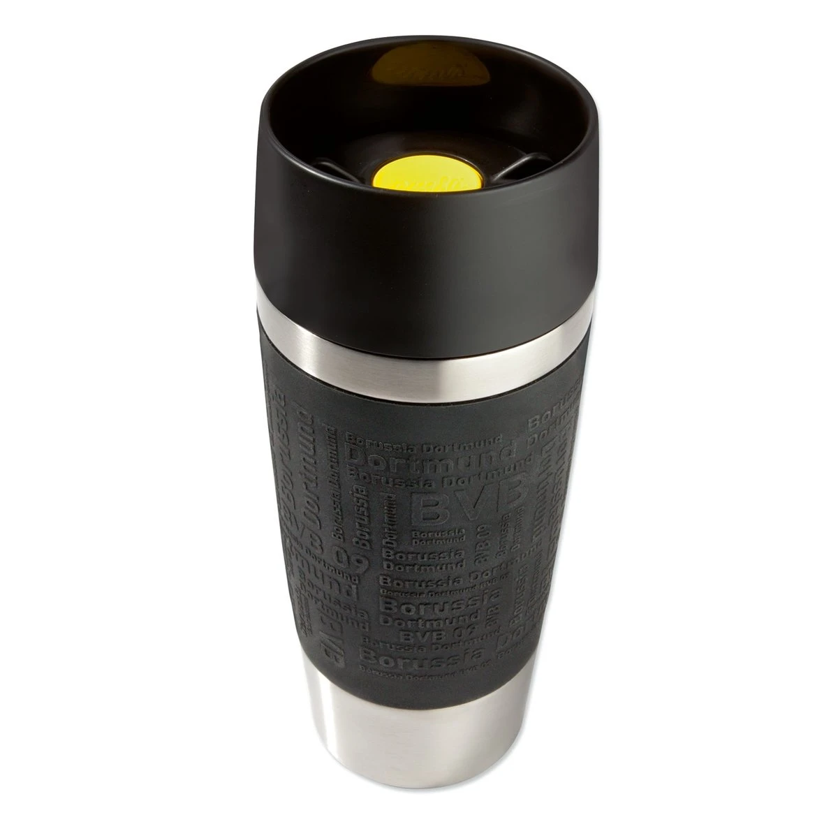 Kaffee zum Mitnehmen! Der BVB-Becher bietet stundenlangen Geschmack von frisch gebrühtem Kaffee dank konstanter Temperatur und luftdichtem Verschluss. Dank des vakuumisoliertem Edelstahlkolben werden heiße Getränke bis zu vier Stunden warm gehalten und kalte Getränke bleiben bis zu acht Stunden kühl. Durch die durch 360°-Öffnung kann man von jeder Seite trinken und die Einhandbedienung erleichtert das Öffnen und Schließen.