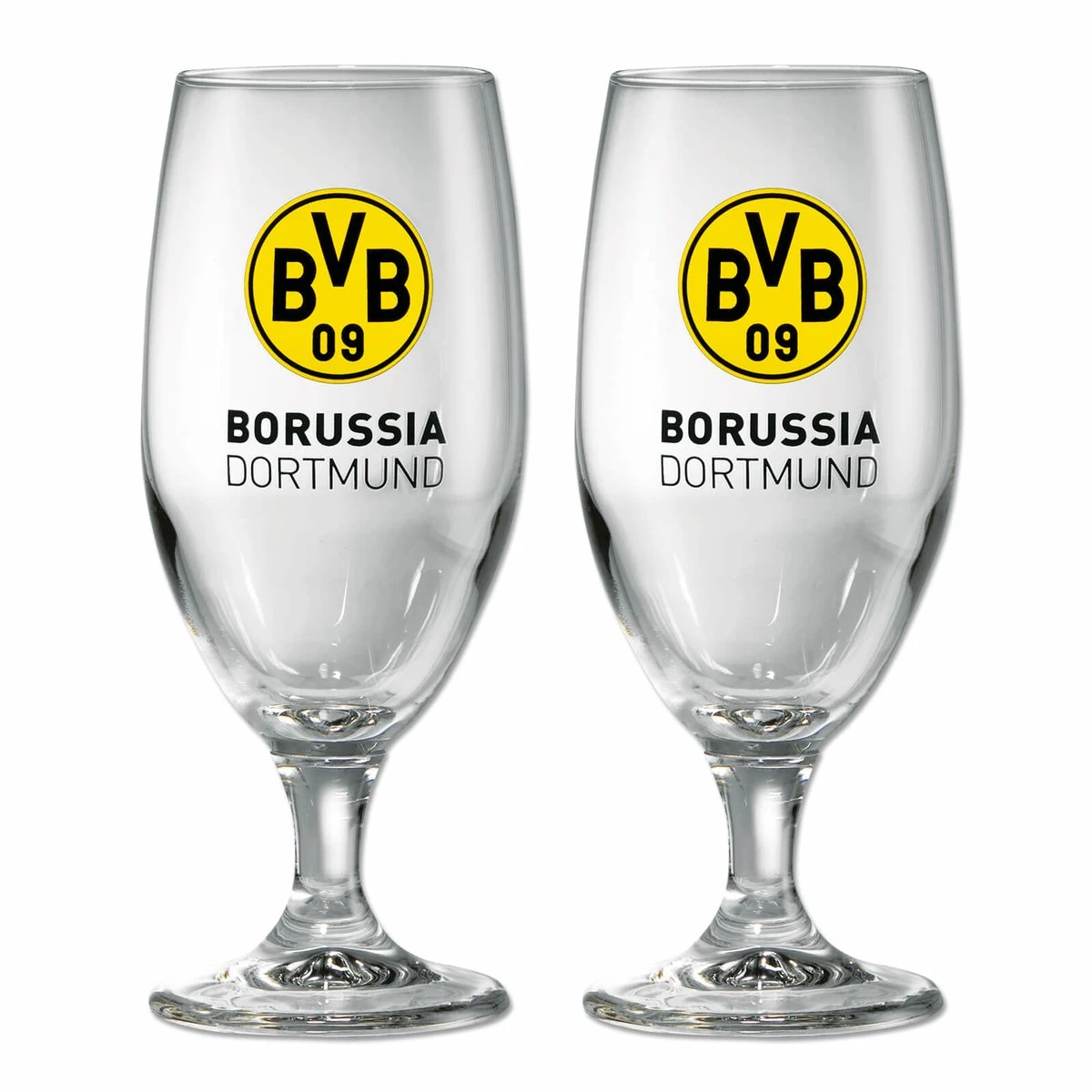 Da schmeckt das Bier gleich doppelt gut. Bei der BVB-Pilstulpe im 2er-Set im wahrsten Sinne des Wortes. Die schönen Biergläser mit dem klassischen Bauch eines Ur-Dortmunder Pilsglases, dem BVB-Logo und dem Borussia Dortmund-Schriftzug auf der Vorderseite dürfen in keinem schwarzgelben Gläserschrank fehlen. Die Gläser sind spülmaschinengeeignet.