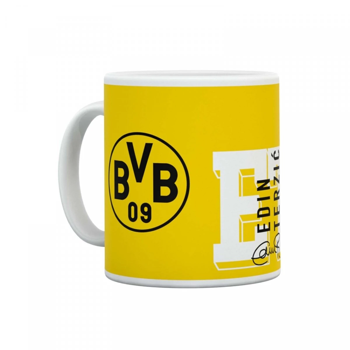 Die BVB Fan Tasse für unseren Trainer – Edin Terzic. Mit der Tasse zum Pokalsieger-Coach von 2021 fühlt man sich ein bisschen, als stünde man selbst direkt an der Seitenlinie. Die gelb-weiße Tasse zeigt das Konterfei von Edin, eine geduckte Signatur und natürlich das Borussia Dortmund Logo. Die Tasse ist der Extra-Artikel für die Fans von Edin Terzic.