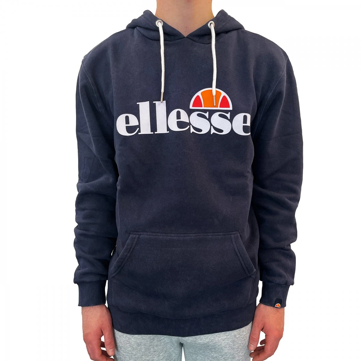 - ellesse-Plastisolprint auf der Brust, gewebtes Etikett am Bündchen