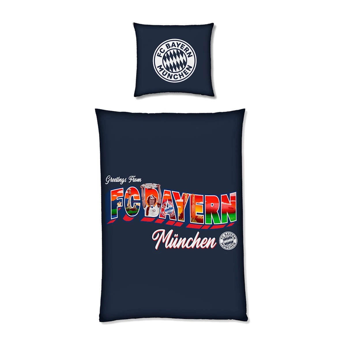 - im Postkartendesign und mit dem Schriftzug „Greetings from FC Bayern München“