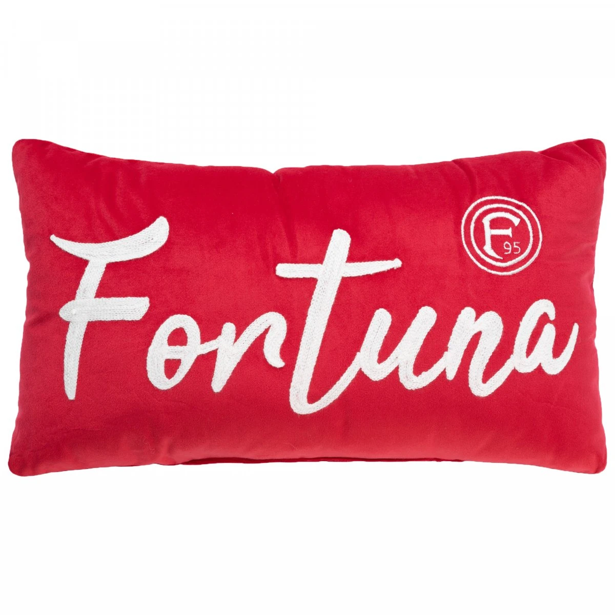 Das rote Kissen mit dem weißen Kordelschriftzug „Fortuna“ und dem F95-Logo passt ideal ins Wohn- oder Schlafzimmer jedes Fortuna-Fans. So können alle Fortuna-Fans sich zuhause wohlfühlen und gleichzeitig ihre Zuneigung zu F95 zeigen.