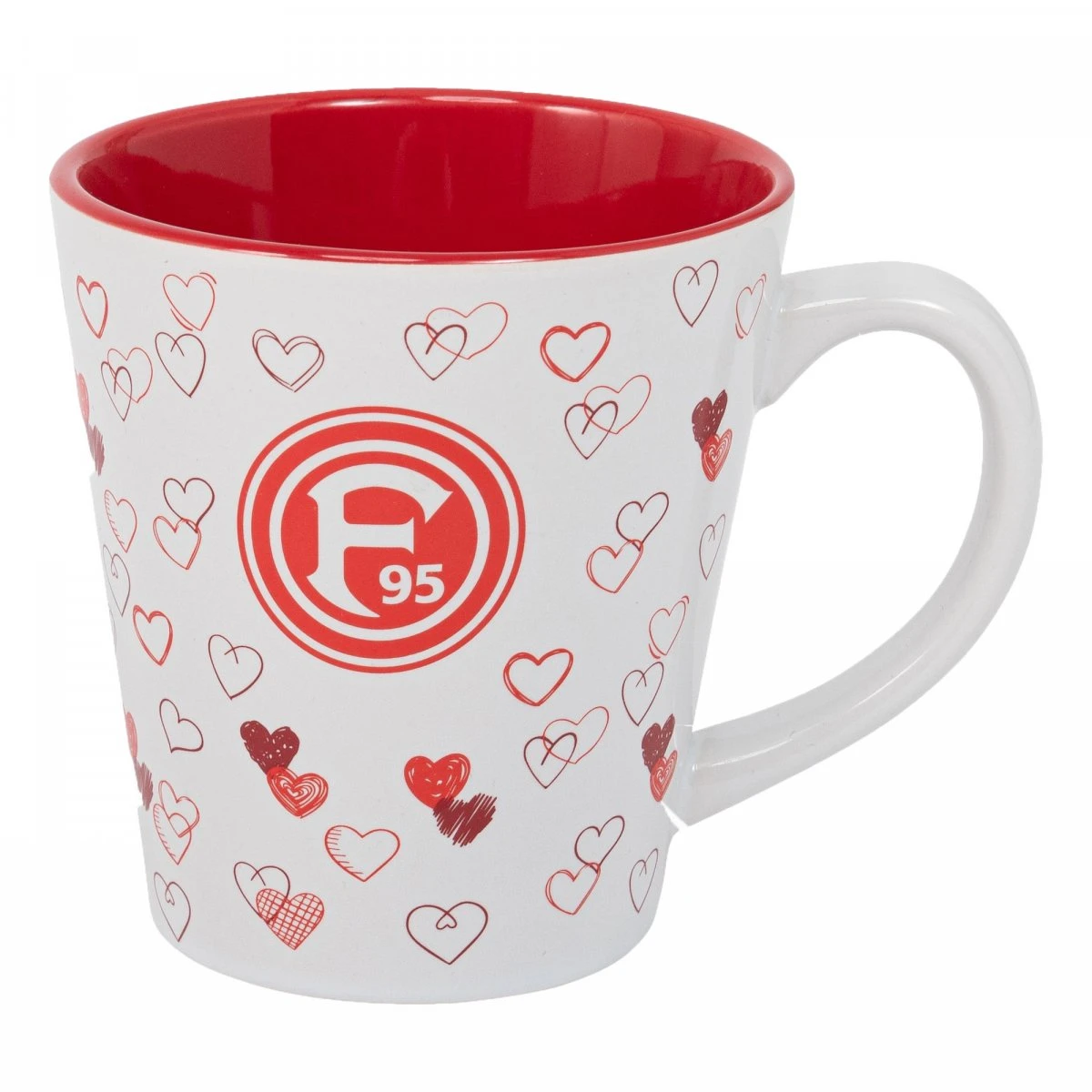 Die weiße Fortuna Tasse besticht durch ihre Herzen und wird abgerundet durch das Emblem Deines Vereins. So lässt sich bestens mit einem Fortuna-Kaffee in den Tag starten.