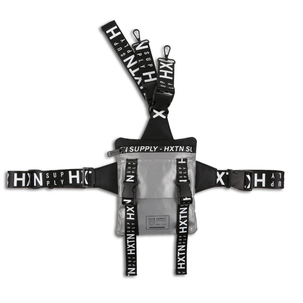 ? Key feature – Unique belt holster construction. Reflective body sensitive to light. Dual secure storage compartments. HXTN branded teeth zip and fastening straps. HXTN branded adjustable body strap. Additional hardware hooks to secure additional items.