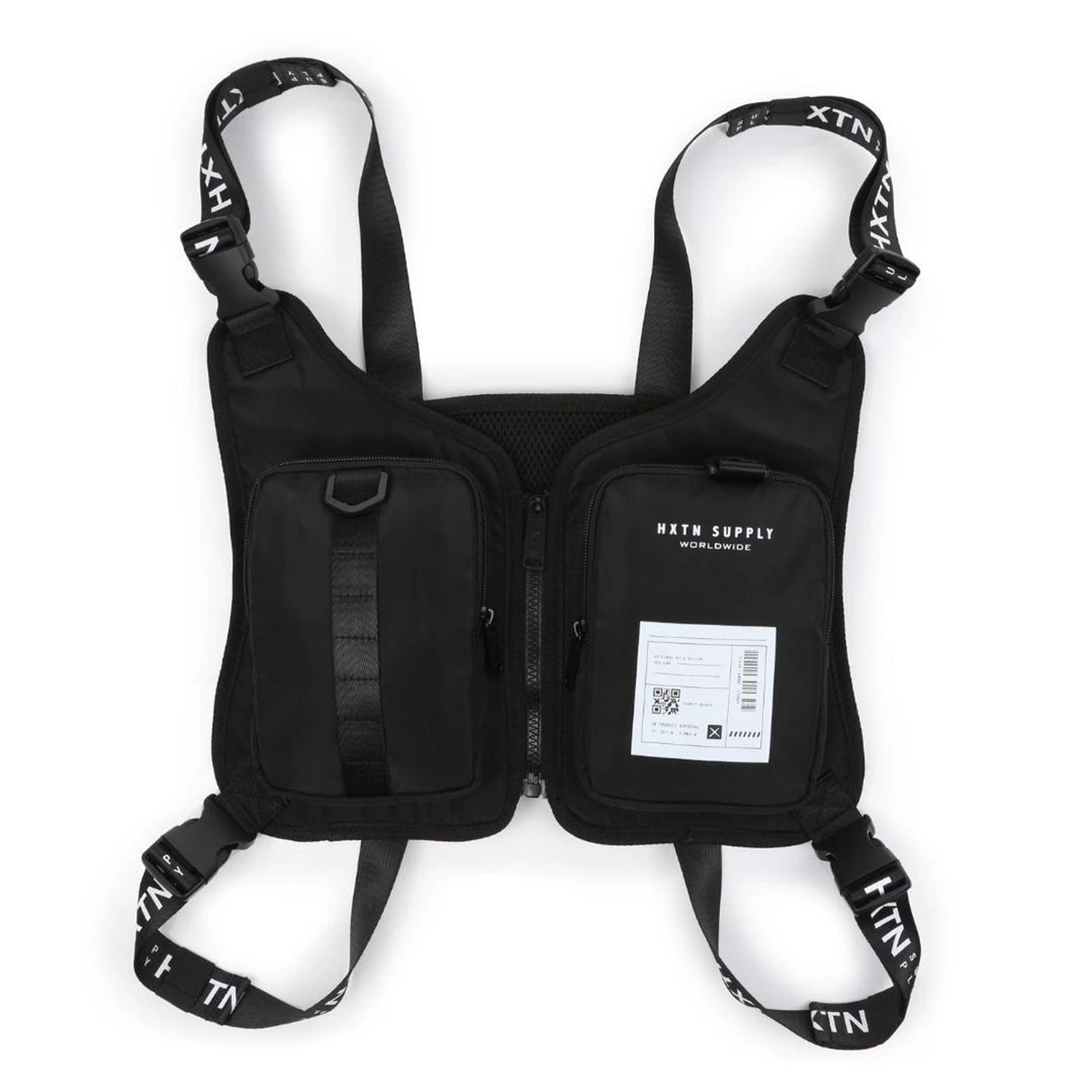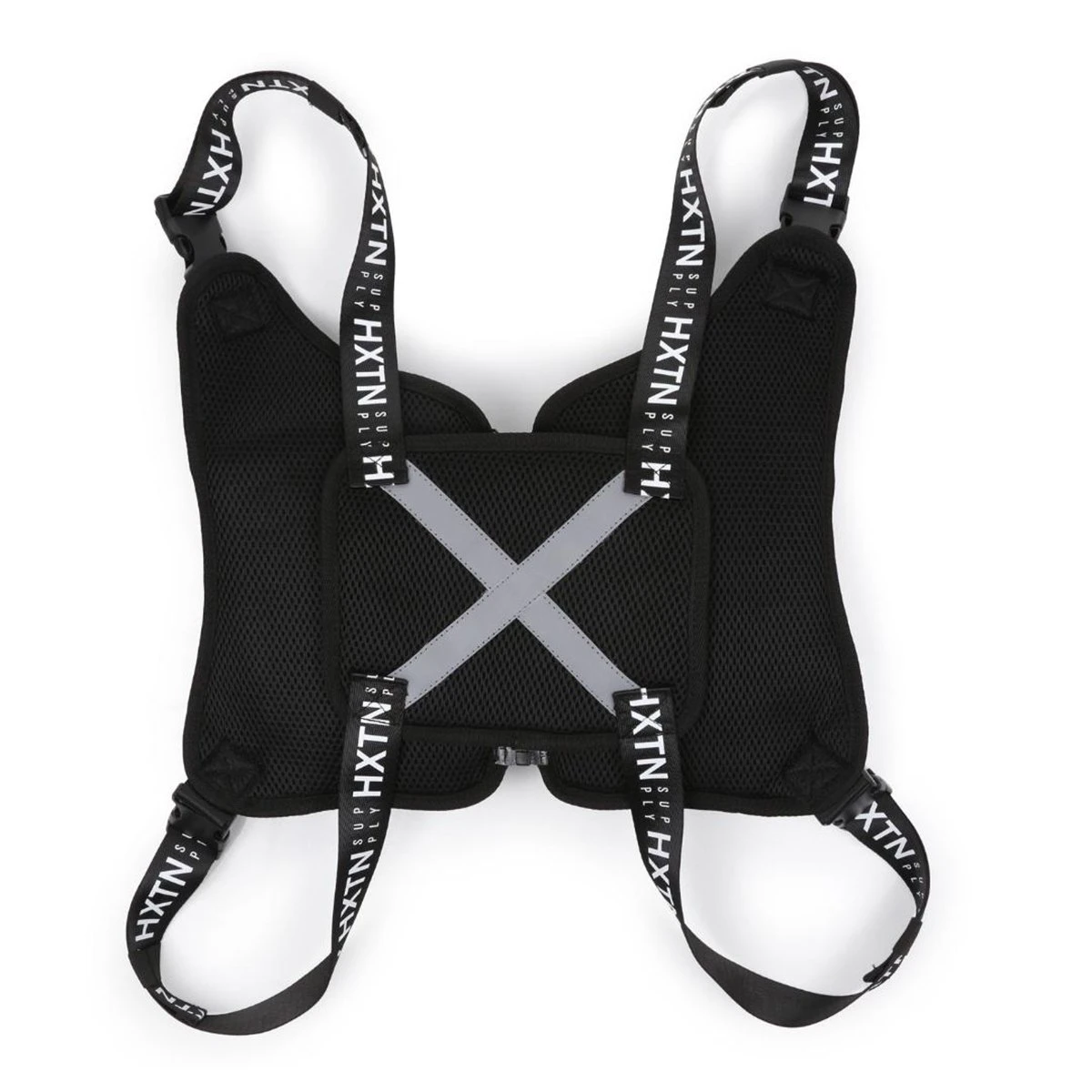 ? Key feature – Unique ‚jacket‘ style. HXTN branded adjustable straps. Centre zip for closed or open wear. Dual zip protected body pouches. Utility taping and hang clip. Mesh back panel with reflective taping for comfortable wear.