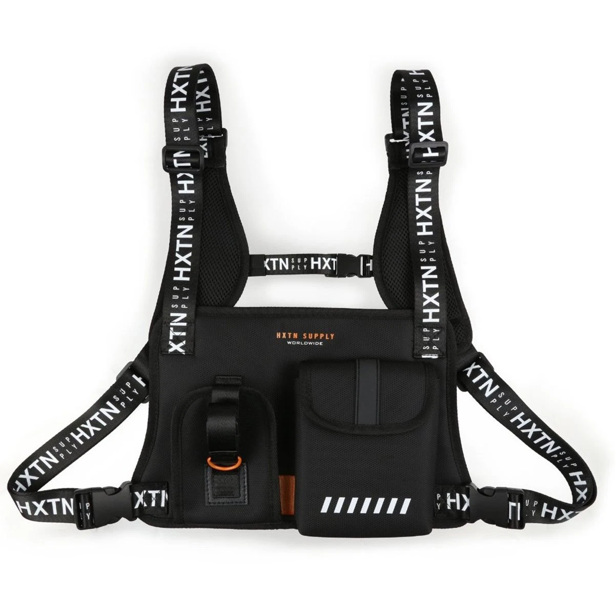 ? Hauptmerkmal - Einzigartiges Design über der Brust. HXTN-Markenriemen für bequemes und einfaches Tragen auf der Rückseite. Utility-Haken- und Fronttaschen-Konstruktion.