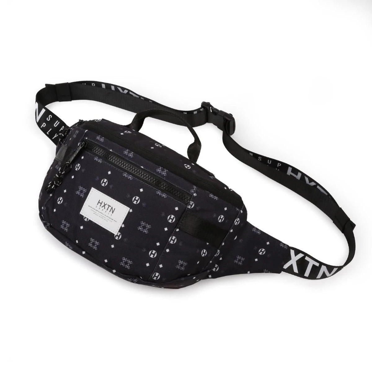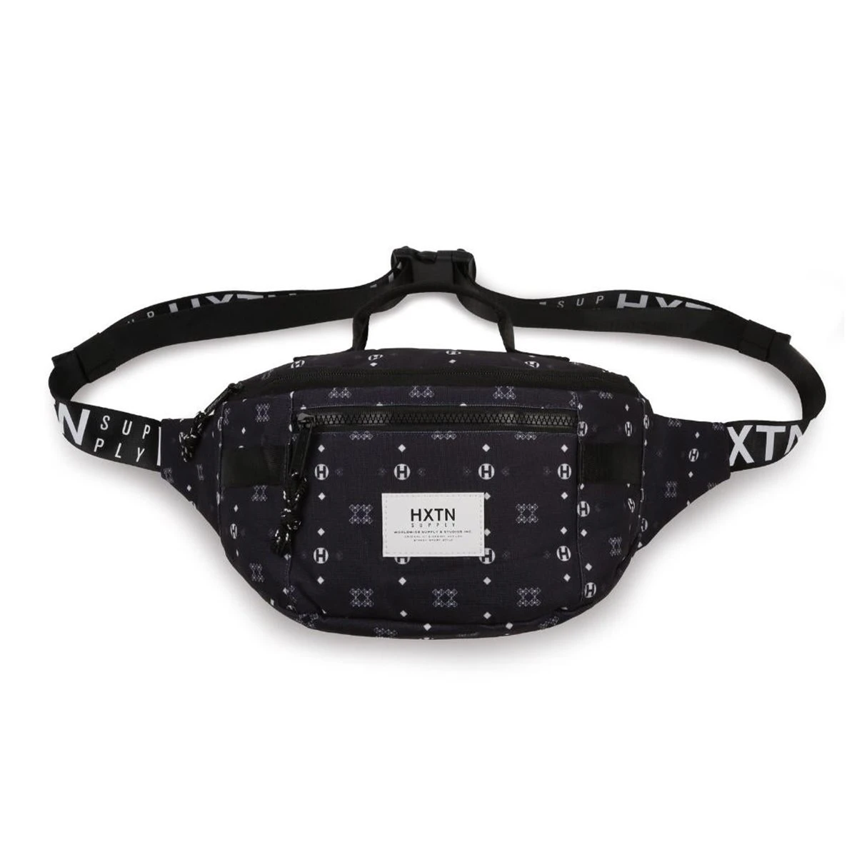 Detachable hardware clip, with highlight HXTN branding. Mesh back padding for comfortable and easy wear. Utility taping across the central body and HXTN branded straps.