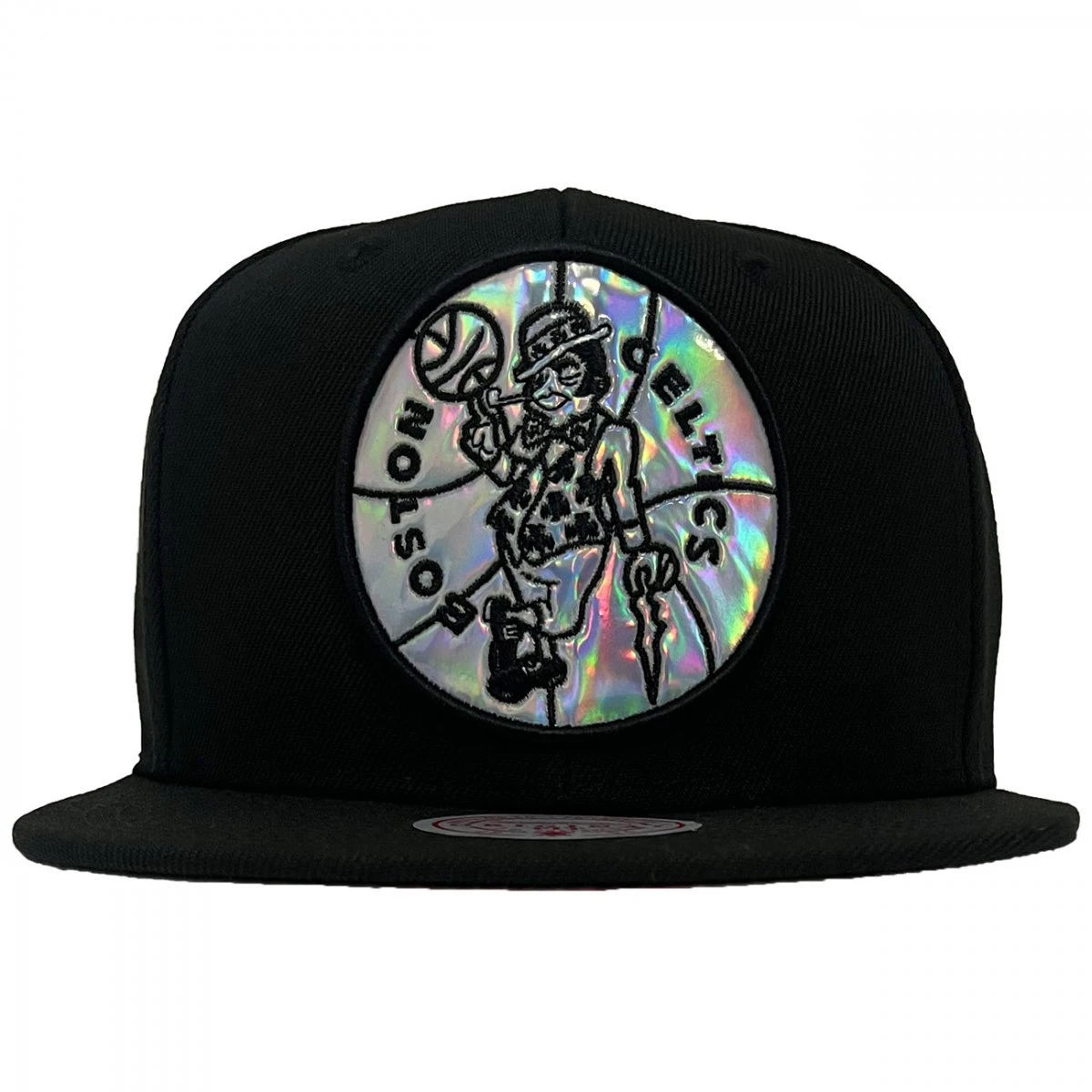 Mitchell & Ness Snapback NBA Iridescent XL Logo von den Celtic Bostons in schwarz.