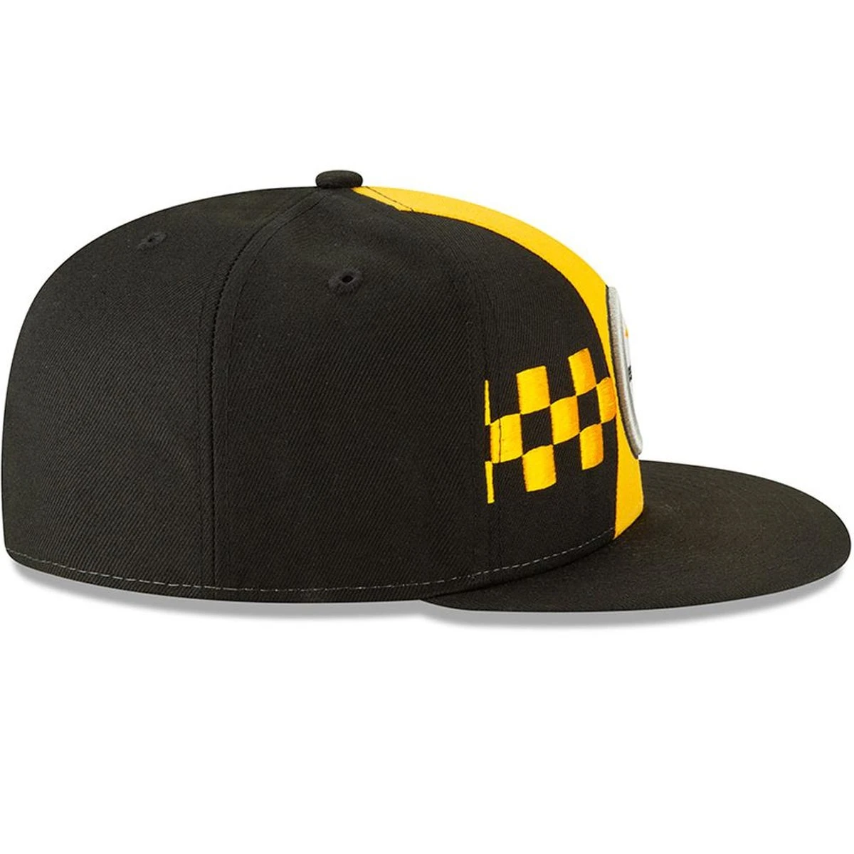 Take no prisoners with this bold Pittsburgh Steelers 59FIFTY, which is presented in an eye catching black and yellow colourway. Inspired by the flag of Pittsburgh, you’ll find not only the official team logo to front, but flag detailing too.