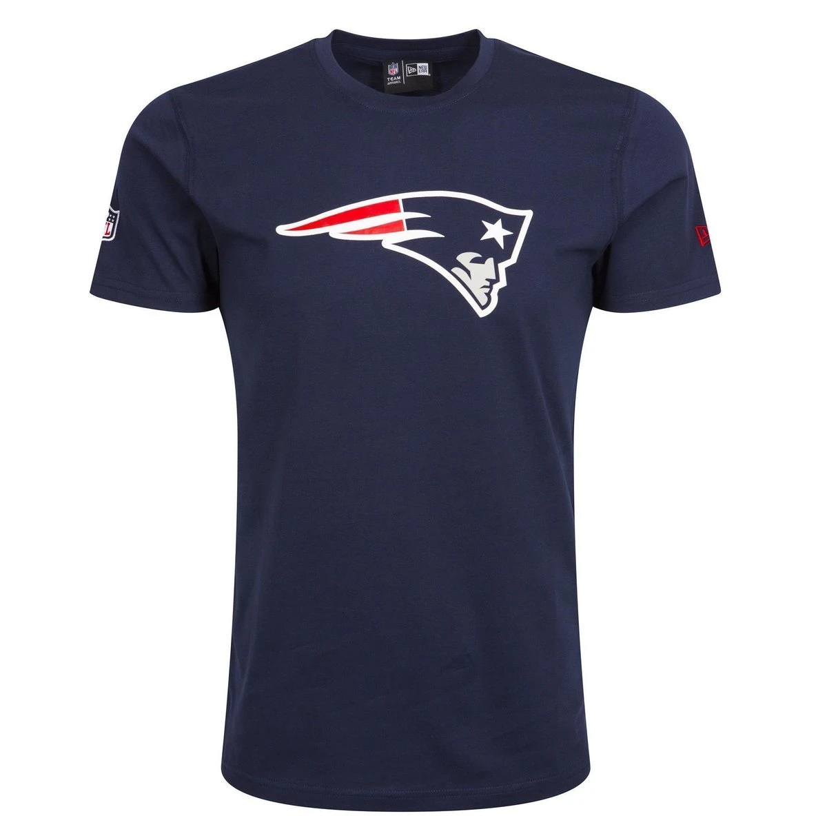NFL T-Shirt der New England Patriots aus 100 % ringgesponnenem Baumwoll-Jersey mit aufgedrucktem Teamlogo vorne und aufgestickter Flagge auf dem linken Arm.