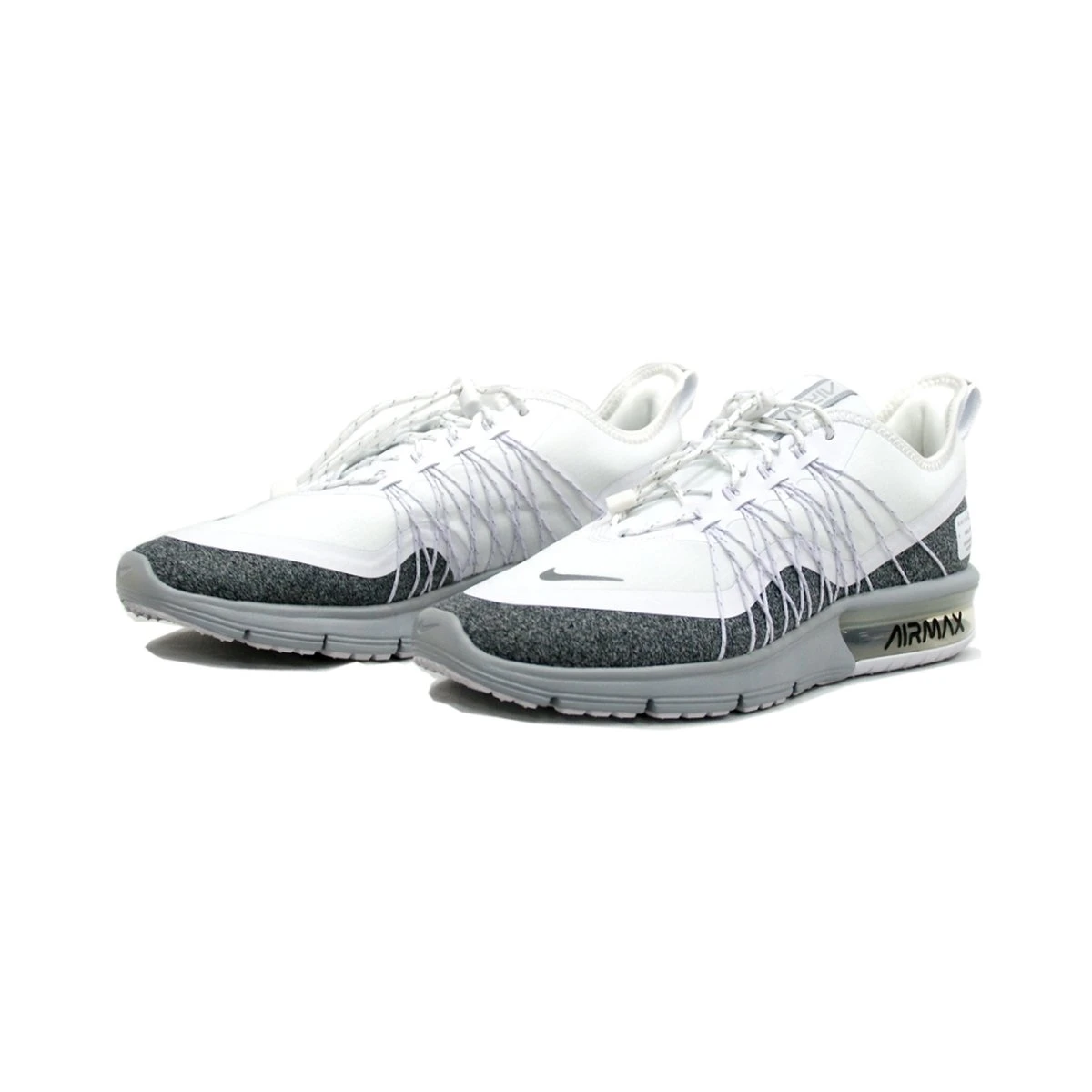 Der Nike Air Max Sequent 4 Utility Damenschuh trotzt den Elementen mit viel Style. Das wasserfeste Obermaterial hält dich trocken und die reflektierenden Elemente sowie das U-förmige Max Air-Element sorgen für einen auffälligen Look.