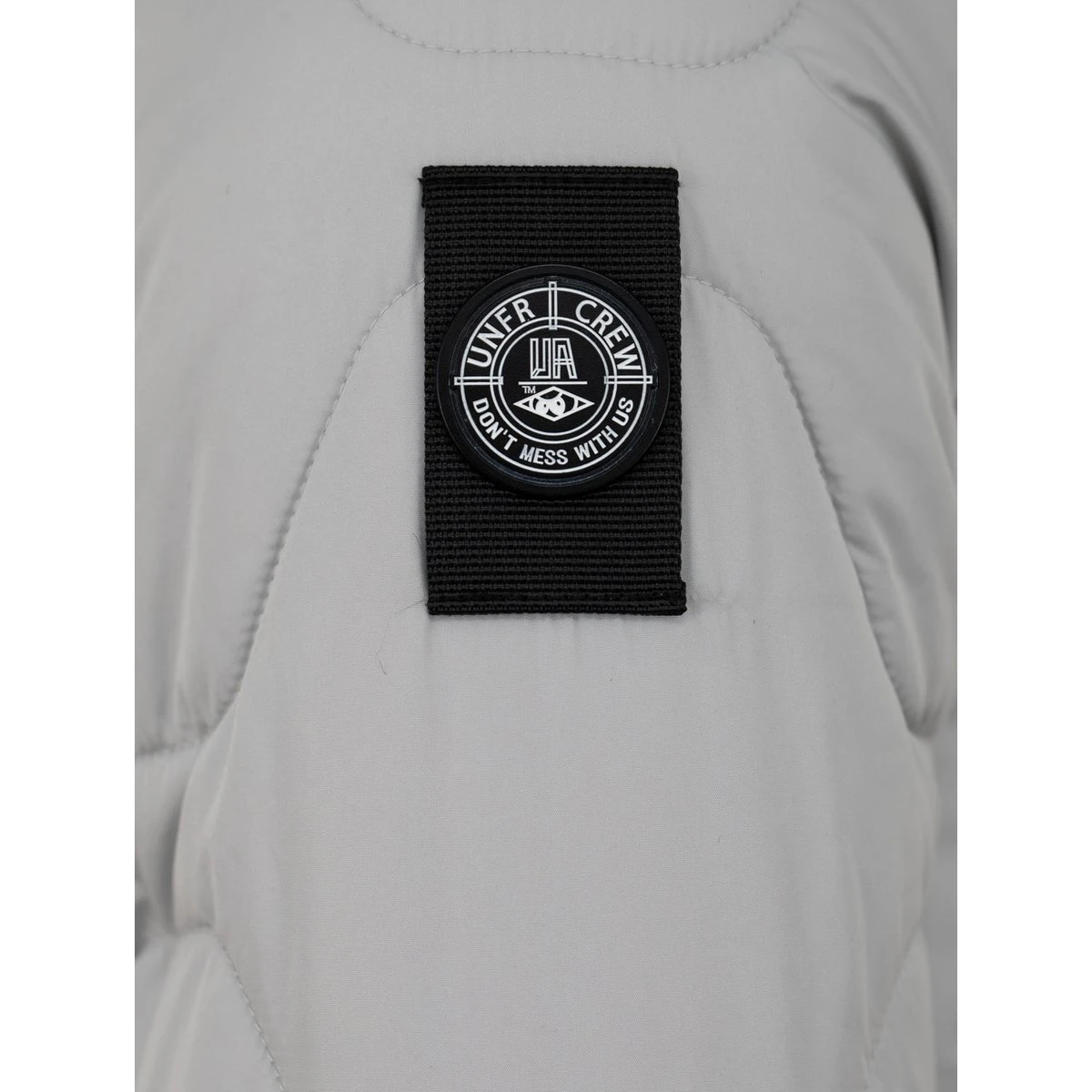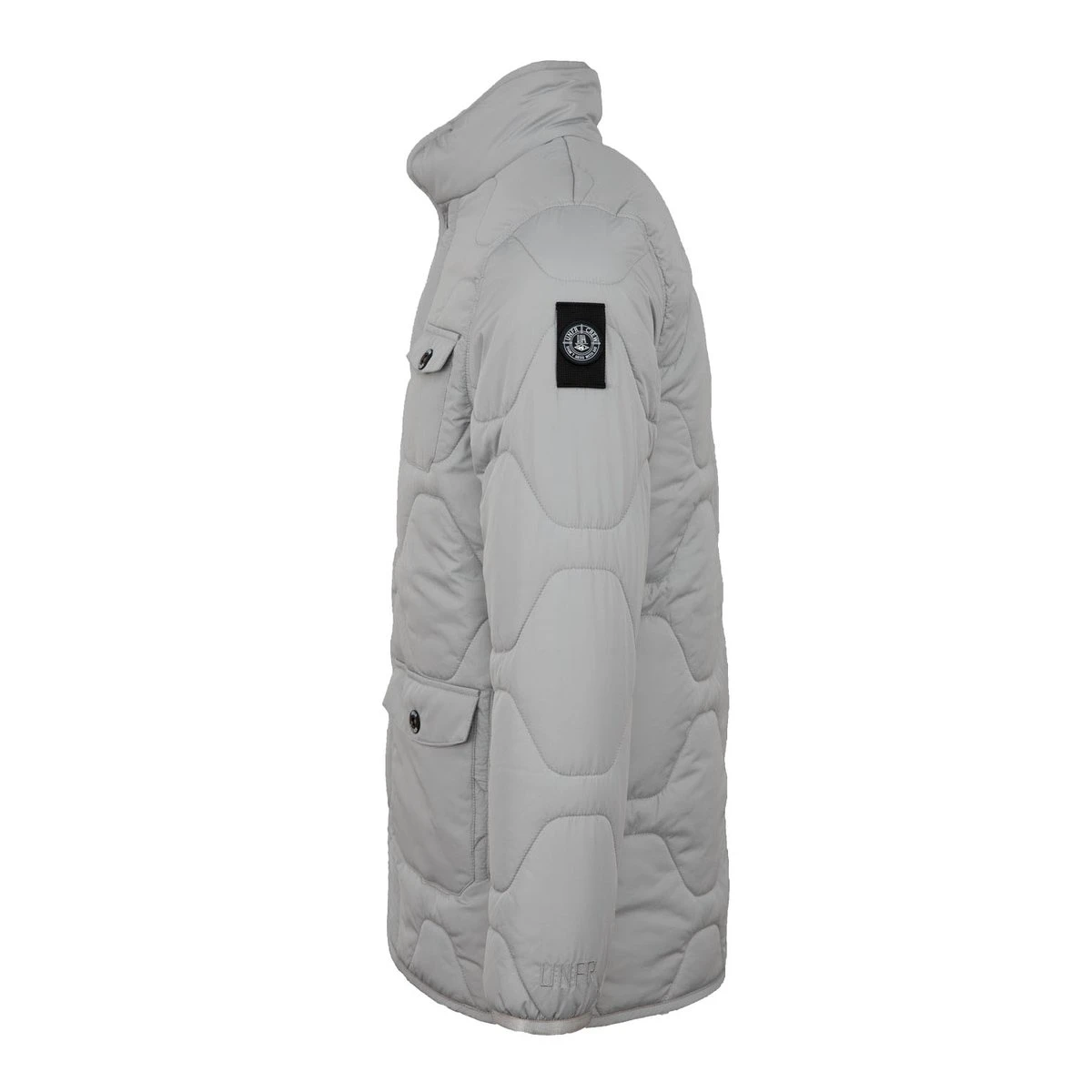 Leicht gefütterte, wasserabweisende Steppjacke mit DMWU Logo Patch am linken Ärmel, aufgesetzten Cargotaschen, Reißverschluss und Druckknopfleiste.