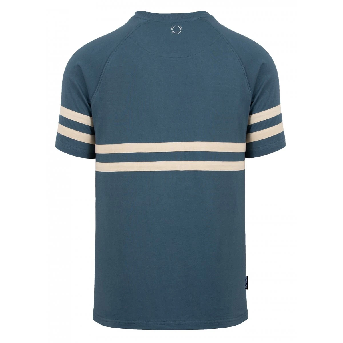 Petrolfarbenes T-Shirt im klassischen DMWU Design mit eingenähten Querstreifen.